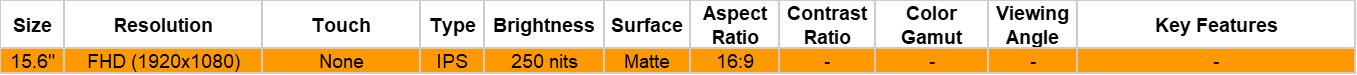 Lenovo Legion Y520-15IKBM (Type 80WY) Screen Specifications Table