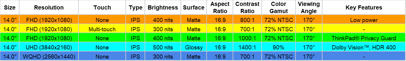 14.0" WQHD (2560x1440), 300 nits, Matte